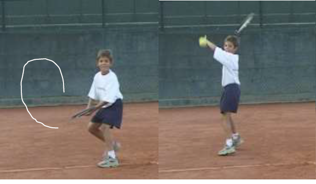 - Movement of the shot: «snail». Big swing and semicircular . The elbow doesn´t separate too much from the body.