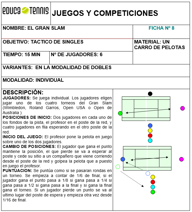 - Diferenciación de las situaciones de juego: uno en el fondo, uno en la red.